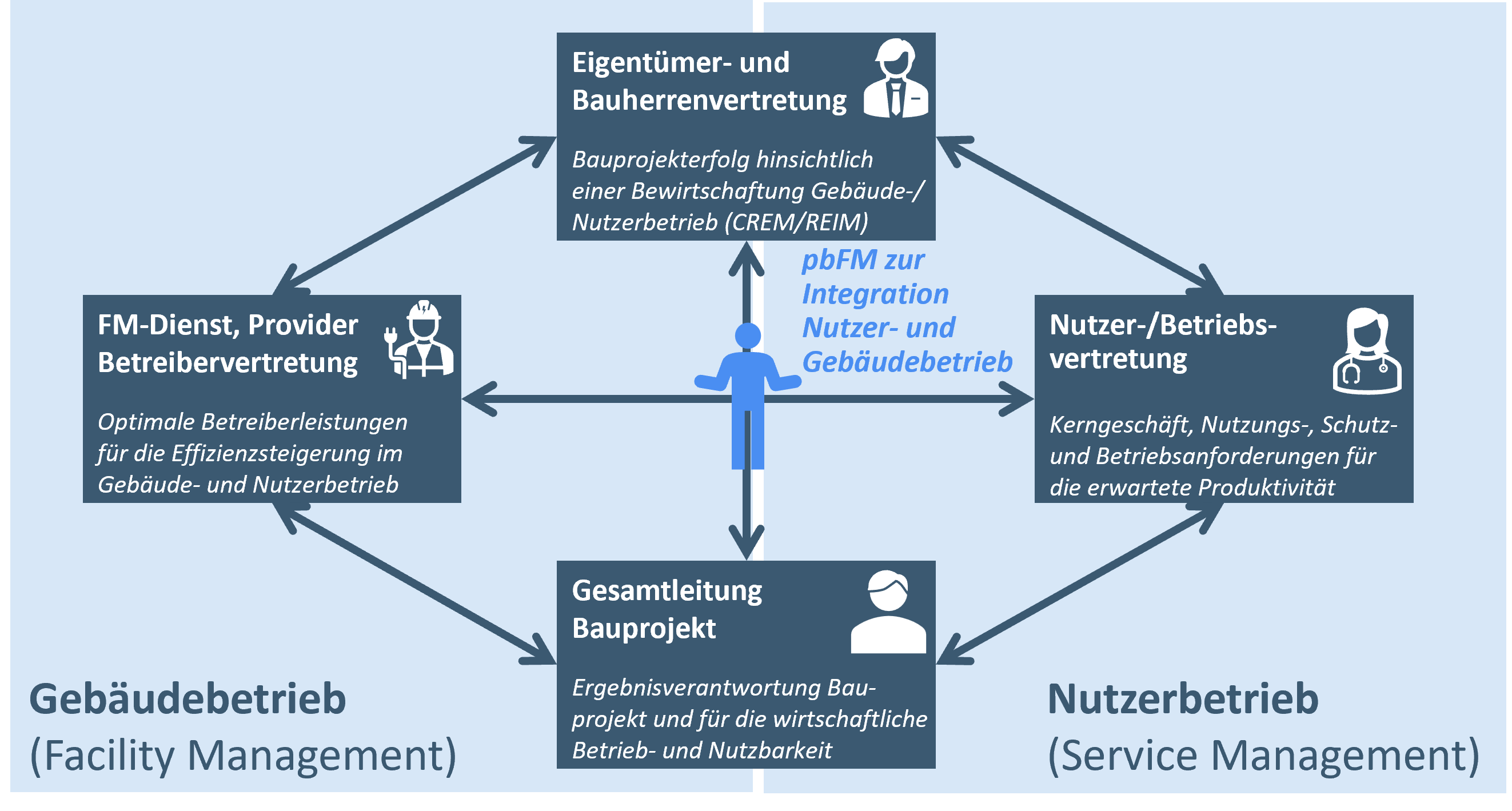 Eigentümer, Unternehmen bzw. Bereichsleiter:innen sichern eine ergebnisorientierte Betriebsführung, die einen effizienten Betrieb und eine attraktive Nutzung über den gesamten Lebenszyklus gewährleistet – insbesondere in komplexen Nutzungs- und Betriebsstrukturen.